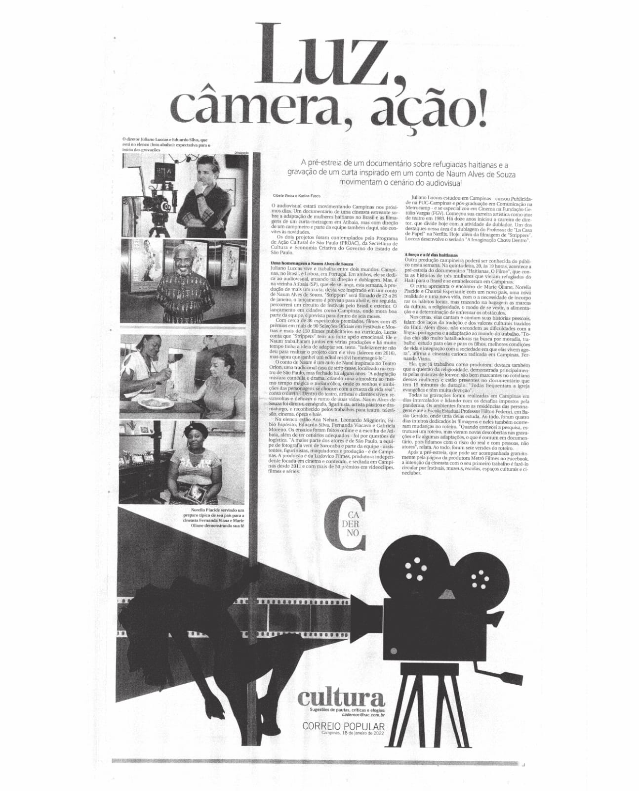 “Desde 2016, ainda no Rio de Janeiro, mantenho contato com vulneráveis imigrantes de outros países. Quando cheguei à Campinas, pude estreitar os vínculos e fazer o que queria. Entendo que o cinema pode trazer sentimentos e sensibilidades junto com as histórias, cometa a diretora [Fernanda Viana]”.